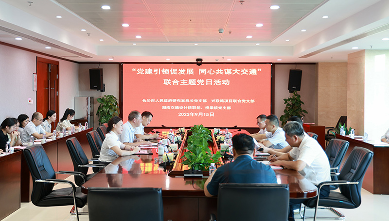 9月15日下午,湖南交通設(shè)計(jì)院聯(lián)合長沙市人民政府研究室機(jī)關(guān)黨支部、長益復(fù)線至興聯(lián)路大通道工程項(xiàng)目聯(lián)合黨支部開展“黨建引領(lǐng)促發(fā)展、同心共謀大交通”主題黨日活動(dòng)。湖南交通設(shè)計(jì)院黨委副書記、副董事長、總經(jīng)理(主持工作)向建軍,長沙市人民政府研究室黨組成員、副主任馬琤(...