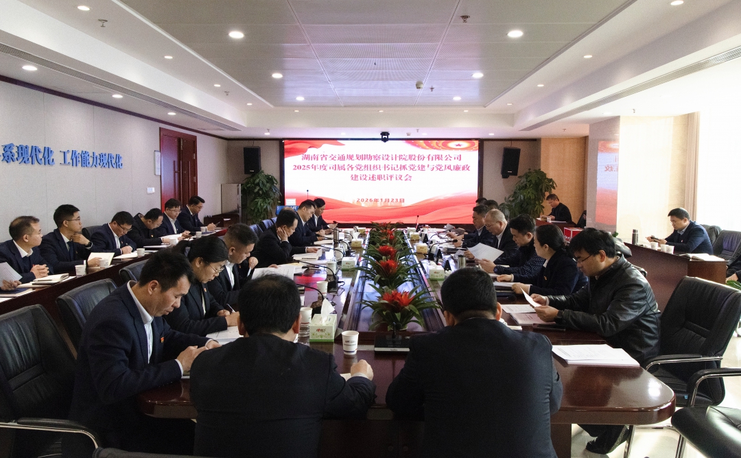 1月23日,湖南省交通規劃勘察設計院股份有限公司召開2025年度黨組織書記抓黨建與黨風廉政建設述職評議會。公司黨委書記、董事長向建軍出席并作點評講話,黨委專職副書記、職工董事、工會主席張重祿主持,公司黨委班子成員和高級管理人員出席會議。 會議設置“展、述、評、測...